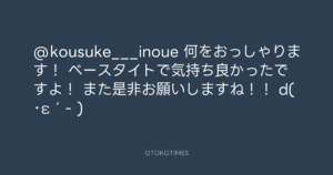 青山英樹 @aoyama_hideki – 21:34・2015年3月7日 2015 3/07 青山英樹 2015-03-07 @kousuke___inoue 何をおっしゃります! ベースタイトで気持ち良かったですよ! また是非お願いしますね!! d( ・ε´- ) Source:https://x.com/aoyama_hideki/status/574186437739... text X Post 青山英樹 青山英樹 この記事が気に入ったら フォローしてね! Follow @OtokoTimes1988 よかったらシェアしてね! URLをコピーしました! 青山英樹 @aoyama_hideki - 21:27・2015年3月7日 寺岡呼人 @yohito_teraoka - 19:30・2015年3月9日 関連記事 Artist 青山英樹 1986.08.29