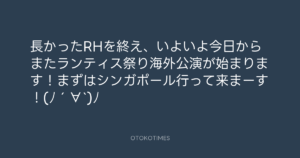 長かったRHを終え、いよいよ今日からまたランティス祭り海外公演が始まります!まずはシンガポール行って来まーす!(ノ´∀`)ノ