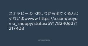 青山英樹 @aoyama_hideki – 12:27・2015年4月25日 2015 4/25 青山英樹 2015-04-25 スナッピーよ…おしりから出てくるんじゃないよwwww https://x.com/aoyama_snappy/status/591782406371217408 Source:https://x.com/aoyama_hideki/status/591805753654... text X Post 青山英樹 青山英樹 この記事が気に入ったら フォローしてね! Follow @OtokoTimes1988 よかったらシェアしてね! URLをコピーしました! 寺岡 呼人 @yohitoteraoka - 11:01・2015年4月25日(IG post) 寺岡 呼人 @yohitoteraoka - 14:52・2015年4月25日(IG post) 関連記事 Artist 青山英樹 1986.08.29