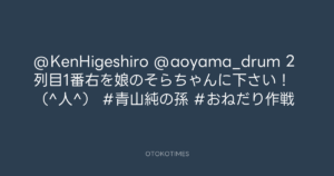青山英樹 @aoyama_hideki – 22:37・2015年6月25日 2015 6/25 青山英樹 2015-06-25 @KenHigeshiro @aoyama_drum 2列目1番右を娘のそらちゃんに下さい! (^人^) #青山純の孫 #おねだり作戦 Source:https://x.com/aoyama_hideki/status/614064928962... text X Post 青山英樹 青山英樹 この記事が気に入ったら フォローしてね! Follow @OtokoTimes1988 よかったらシェアしてね! URLをコピーしました! 寺岡 呼人 @yohitoteraoka - 12:24・2015年6月25日(IG post) 青山英樹 @aoyama_hideki - 22:51・2015年6月25日 関連記事 Artist 青山英樹 1986.08.29