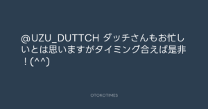 ダッチさんもお忙しいとは思いますがタイミング合えば是非!(^^)