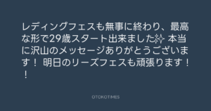 レディングフェスも無事に終わり、最高な形で29歳スタート出来ました✨