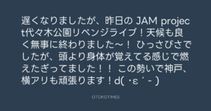 JAM project代々木公園リベンジライブ!天候も良く無事に終わりました〜!