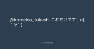 青山英樹 @aoyama_hideki – 18:31・2016年2月4日 2016 2/04 青山英樹 2016-02-04 @kameleo_takeshi これだけです!σ(´∀` ) Source:https://x.com/aoyama_hideki/status/695177878179... text X Post 青山英樹 青山英樹 この記事が気に入ったら フォローしてね! Follow @OtokoTimes1988 よかったらシェアしてね! URLをコピーしました! 青山英樹 @aoyama_hideki - 18:30・2016年2月4日 青山英樹 @aoyama_hideki - 21:15・2016年2月4日 関連記事 Artist 青山英樹 1986.08.29