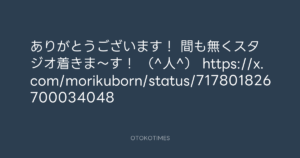 青山英樹 @aoyama_hideki – 18:41・2016年4月7日 2016 4/07 青山英樹 2016-04-07 ありがとうございます! 間も無くスタジオ着きま〜す! (^人^) https://x.com/morikuborn/status/717801826700034048 Source:https://x.com/aoyama_hideki/status/718010693207... text X Post 青山英樹 青山英樹 この記事が気に入ったら フォローしてね! Follow @OtokoTimes1988 よかったらシェアしてね! URLをコピーしました! 青山英樹 @aoyama_hideki - 1:04・2016年4月7日 Koyo Maeda @koyomaeda - 12:47・2016年4月9日 関連記事 Artist 青山英樹 1986.08.29