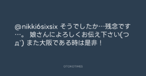 青山英樹 @aoyama_hideki – 12:53・2016年4月27日 2016 4/27 青山英樹 2016-04-27 @nikki6sixsix そうでしたか…残念です…。 娘さんによろしくお伝え下さい(つд`) また大阪である時は是非! Source:https://x.com/aoyama_hideki/status/725170974295... text X Post 青山英樹 青山英樹 この記事が気に入ったら フォローしてね! Follow @OtokoTimes1988 よかったらシェアしてね! URLをコピーしました! 青山英樹 @aoyama_hideki - 0:58・2016年4月27日 寺岡 呼人 @yohitoteraoka - 22:26・2016年4月27日(IG post) 関連記事 Artist 青山英樹 1986.08.29