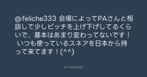 青山英樹 @aoyama_hideki – 1:05・2016年5月13日 2016 5/13 青山英樹 2016-05-13 @feliche333 会場によってPAさんと相談して少しピッチを上げ下げしてるくらいで、基本はあまり変わってないです! いつも使っているスネアを日本から持って来てます!(^^) Source:https://x.com/aoyama_hideki/status/730791000872... text X Post 青山英樹 青山英樹 この記事が気に入ったら フォローしてね! Follow @OtokoTimes1988 よかったらシェアしてね! URLをコピーしました! 青山英樹 @aoyama_hideki - 13:27・2016年5月12日 青山英樹 @aoyama_hideki - 12:24・2016年5月14日 関連記事 Artist 青山英樹 1986.08.29