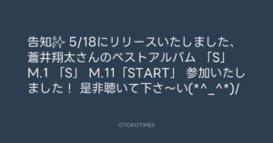 青山英樹 @aoyama_hideki – 10:16・2016年5月29日 2016 5/29 青山英樹 2016-05-29 告知✨ 5/18にリリースいたしました、 蒼井翔太さんのベストアルバム 「S」 M.1 「S」 M.11「START」 参加いたしました! 是非聴いて下さ〜い(*^_^*)/ Source:https://x.com/aoyama_hideki/status/736727982421... text X Post 青山英樹 青山英樹 この記事が気に入ったら フォローしてね! Follow @OtokoTimes1988 よかったらシェアしてね! URLをコピーしました! 青山英樹 @aoyama_hideki - 9:57・2016年5月29日 Koyo Maeda @koyomaeda - 11:48・2016年5月30日 関連記事 Artist 青山英樹 1986.08.29