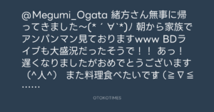@Megumi_Ogata 緒方さん無事に帰ってきました〜(*´∀`*)ノ
