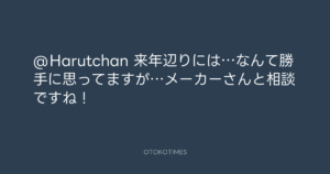 青山英樹 @aoyama_hideki – 21:32・2016年11月16日 2016 11/16 青山英樹 2016-11-16 @Harutchan 来年辺りには…なんて勝手に思ってますが…メーカーさんと相談ですね! Source:https://x.com/aoyama_hideki/status/798866317956... text X Post 青山英樹 青山英樹 この記事が気に入ったら フォローしてね! Follow @OtokoTimes1988 よかったらシェアしてね! URLをコピーしました! 青山英樹 @aoyama_hideki - 21:31・2016年11月16日 Koyo Maeda @koyomaeda - 7:32・2016年11月17日 関連記事 Artist 青山英樹 1986.08.29