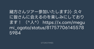 青山英樹 @aoyama_hideki – 9:22・2017年1月9日 2017 1/09 青山英樹 2017-01-09 緒方さんツアー参加いたします✨ 久々に皆さんに会えるのを楽しみにしております! (^人^) https://x.com/megumi_ogata/status/817577061455785984 Source:https://x.com/aoyama_hideki/status/818251624242... text X Post 青山英樹 青山英樹 この記事が気に入ったら フォローしてね! Follow @OtokoTimes1988 よかったらシェアしてね! URLをコピーしました! 青山英樹 @aoyama_hideki - 23:36・2017年1月8日 Koyo Maeda @koyomaeda - 15:58・2017年1月9日 関連記事 Artist 青山英樹 1986.08.29