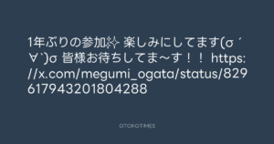 青山英樹 @aoyama_hideki – 20:17・2017年2月9日 2017 2/09 青山英樹 2017-02-09 1年ぶりの参加✨ 楽しみにしてます(σ´∀`)σ 皆様お待ちしてま〜す!! https://x.com/megumi_ogata/status/829617943201804288 Source:https://x.com/aoyama_hideki/status/829650462877... text X Post 青山英樹 青山英樹 この記事が気に入ったら フォローしてね! Follow @OtokoTimes1988 よかったらシェアしてね! URLをコピーしました! 青山英樹 @aoyama_hideki - 13:23・2017年2月9日 Koyo Maeda @koyomaeda - 15:07・2017年2月10日 関連記事 Artist 青山英樹 1986.08.29