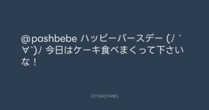 青山英樹 @aoyama_hideki – 11:00・2017年2月23日 2017 2/23 青山英樹 2017-02-23 @pashbebe ハッピーバースデー🎂 (ノ´∀`)ノ 今日はケーキ食べまくって下さいな! Source:https://x.com/aoyama_hideki/status/834583770703... text X Post 青山英樹 青山英樹 この記事が気に入ったら フォローしてね! Follow @OtokoTimes1988 よかったらシェアしてね! URLをコピーしました! 東京レコード @tokyo_records - 10:25・2017年2月23日 Koyo Maeda @koyomaeda - 13:14・2017年2月23日 関連記事 Artist 青山英樹 1986.08.29