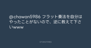 青山英樹 @aoyama_hideki – 21:29・2017年3月22日 2017 3/22 青山英樹 2017-03-22 @chawan5986 フラット奏法を自分はやったことがないので、逆に教えて下さいwww Source:https://x.com/aoyama_hideki/status/844526527819... text X Post 青山英樹 青山英樹 この記事が気に入ったら フォローしてね! Follow @OtokoTimes1988 よかったらシェアしてね! URLをコピーしました! 青山英樹 @aoyama_hideki - 21:25・2017年3月22日 青山英樹 @aoyama_hideki - 23:59・2017年3月22日 関連記事 Artist 青山英樹 1986.08.29