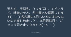 天むす、手羽先、ひつまぶし、エビフライ、味噌カツと、名古屋メシ満喫してます( ´ー`)