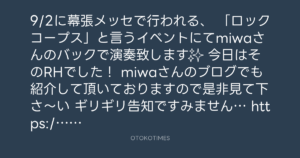 「ロックコープス」と言うイベントにてmiwaさんのバックで演奏致します✨