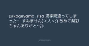 青山英樹 @aoyama_hideki – 23:59・2018年8月30日 2018 8/30 青山英樹 2018-08-30 @kageyama_risa 漢字間違ってしまった… すみません(>人<;) 改めて梨彩ちゃんありがと〜✨ Source:https://x.com/aoyama_hideki/status/103518010644... text X Post 青山英樹 青山英樹 この記事が気に入ったら フォローしてね! Follow @OtokoTimes1988 よかったらシェアしてね! URLをコピーしました! 青山英樹 @aoyama_hideki - 23:57・2018年8月30日 青山英樹 @aoyama_hideki - 23:59・2018年8月30日 関連記事 Artist 青山英樹 1986.08.29
