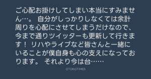 自分がしっかりしなくては余計周りを心配にさせてしまうだけなので、今まで通りツイッターも更新して行きます!
