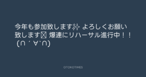 青山英樹 @aoyama_hideki – 11:04・2018年11月9日 2018 11/09 青山英樹 2018-11-09 今年も参加致します✨ よろしくお願い致します‼️ 爆連にリハーサル進行中!! (∩´∀`∩) Source:https://x.com/aoyama_hideki/status/106071471801... text X Post 青山英樹 青山英樹 この記事が気に入ったら フォローしてね! Follow @OtokoTimes1988 よかったらシェアしてね! URLをコピーしました! 青山英樹 @aoyama_hideki - 10:48・2018年11月9日 Koyo Maeda @koyomaeda - 11:19・2018年11月10日 関連記事 Artist 青山英樹 1986.08.29