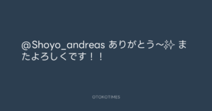 青山英樹 @aoyama_hideki – 17:45・2019年8月30日 2019 8/30 青山英樹 2019-08-30 @Shoyo_andreas ありがとう〜✨ またよろしくです!! Source:https://x.com/aoyama_hideki/status/116735760429... text X Post 青山英樹 青山英樹 この記事が気に入ったら フォローしてね! Follow @OtokoTimes1988 よかったらシェアしてね! URLをコピーしました! 青山英樹 @aoyama_hideki - 17:44・2019年8月30日 青山英樹 @aoyama_hideki - 17:45・2019年8月30日 関連記事 Artist 青山英樹 1986.08.29