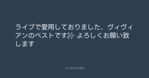 青山英樹 @aoyama_hideki – 15:14・2019年10月11日 2019 10/11 青山英樹 2019-10-11 ライブで愛用しておりました、ヴィヴィアンのベストです✨ よろしくお願い致します🤲 Source:https://x.com/aoyama_hideki/status/118253992662... text X Post 青山英樹 青山英樹 この記事が気に入ったら フォローしてね! Follow @OtokoTimes1988 よかったらシェアしてね! URLをコピーしました! 寺岡呼人 @yohito_teraoka - 12:36・2019年10月11日 Koyo Maeda @koyomaeda - 14:53・2019年10月14日 関連記事 Artist 青山英樹 1986.08.29