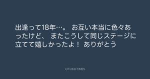 青山英樹 @aoyama_hideki – 0:26・2020年8月4日 2020 8/04 青山英樹 2020-08-04 出逢って18年…。 お互い本当に色々あったけど、 またこうして同じステージに立てて嬉しかったよ! ありがとう👍 Source:https://x.com/aoyama_hideki/status/129030808584... text X Post 青山英樹 青山英樹 この記事が気に入ったら フォローしてね! Follow @OtokoTimes1988 よかったらシェアしてね! URLをコピーしました! 青山英樹 @aoyama_hideki - 0:21・2020年8月4日 寺岡呼人 @yohito_teraoka - 9:51・2020年8月4日 関連記事 Artist 青山英樹 1986.08.29