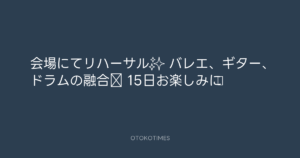 青山英樹 @aoyama_hideki – 21:49・2021年10月13日 2021 10/13 青山英樹 2021-10-13 会場にてリハーサル✨ バレエ、ギター、ドラムの融合‼️ 15日お楽しみに♪ Source:https://x.com/aoyama_hideki/status/144826976370... text X Post 青山英樹 青山英樹 この記事が気に入ったら フォローしてね! Follow @OtokoTimes1988 よかったらシェアしてね! URLをコピーしました! 寺岡呼人 @yohito_teraoka - 13:08・2021年10月13日 青山英樹 @aoyama_hideki - 21:49・2021年10月13日 関連記事 Artist 青山英樹 1986.08.29