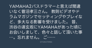 昔、渋谷の道玄坂にYAMAHAがあった頃にお会いしまして、色々と話して頂いた事…。忘れません。