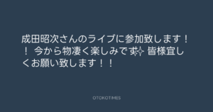 青山英樹 @aoyama_hideki – 22:05・2022年2月4日 2022 2/04 青山英樹 2022-02-04 成田昭次さんのライブに参加致します!! 今から物凄く楽しみです✨ 皆様宜しくお願い致します!! Source:https://x.com/aoyama_hideki/status/148958596889... text X Post 青山英樹 青山英樹 この記事が気に入ったら フォローしてね! Follow @OtokoTimes1988 よかったらシェアしてね! URLをコピーしました! 青山英樹 @aoyama_hideki - 22:05・2022年2月4日 Addict of The Tripminds @Atripminds2021 - 14:47・2022年2月5日 関連記事 Artist 青山英樹 1986.08.29