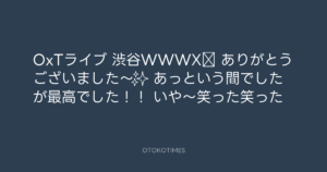 青山英樹 @aoyama_hideki – 22:51・2022年9月10日 2022 9/10 青山英樹 2022-09-10 OxTライブ 渋谷WWWX‼️ ありがとうございました〜✨ あっという間でしたが最高でした!! いや〜笑った笑った🤣 Source:https://x.com/aoyama_hideki/status/156859811327... text X Post 青山英樹 青山英樹 この記事が気に入ったら フォローしてね! Follow @OtokoTimes1988 よかったらシェアしてね! URLをコピーしました! Koyo Maeda @koyomaeda - 17:15・2022年9月10日 Addict of The Tripminds @Atripminds2021 - 0:41・2022年9月12日 関連記事 Artist 青山英樹 1986.08.29