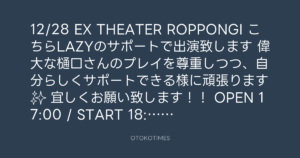 こちらLAZYのサポートで出演致します🥁