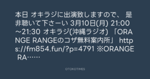 本日 オキラジに出演致しますので、