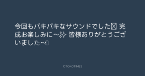 青山英樹 @aoyama_hideki – 21:24・2025年9月28日 2025 9/28 青山英樹 2025-09-28 今回もバキバキなサウンドでした‼️🎸🥁 完成お楽しみに〜✨ 皆様ありがとうございました〜♪ Source:https://x.com/aoyama_hideki/status/197227619501... text X Post 青山英樹 青山英樹 この記事が気に入ったら フォローしてね! Follow @OtokoTimes1988 よかったらシェアしてね! URLをコピーしました! OTOKOTIMES @OtokoTimes1988 - 17:32・2025年9月28日 Koyo Maeda @koyomaeda - 0:43・2025年9月29日 関連記事 Artist 青山英樹 1986.08.29