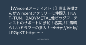 【Wincentアーティスト!】青山英樹さんがWincentファミリーに仲間入!KAT-TUN、BABYMETAL他ビッグアーティストのサポートに参加!名実共に素晴らしいドラマーの参入!→http://bit.ly/LRGpKT