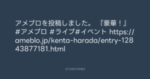 原田喧太 @kenta_harada – 19:32・2024年3月10日 2024 3/10 2024-03-10 アメブロを投稿しました。 『豪華!』 #アメブロ #ライブ#イベント https://ameblo.jp/kenta-harada/entry-12843877181.html Source:https://x.com/kenta_harada/status/1766774099655... text X Post この記事が気に入ったら フォローしてね! Follow @OtokoTimes1988 よかったらシェアしてね! URLをコピーしました! NARITA THOMAS SIMPSON @narita.corp - 13:03・2024年3月10日(IG Stories) 青山英樹 @aoyama_hideki - 23:11・2024年3月11日