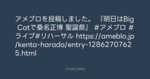 原田喧太 @kenta_harada – 18:55・2024年8月6日 2024 8/06 2024-08-06 アメブロを投稿しました。 『明日はBig Catで桑名正博 聖誕祭』 #アメブロ #ライブ#リハーサル https://ameblo.jp/kenta-harada/entry-12862707625.html Source:https://x.com/kenta_harada/status/1820760682989... text X Post この記事が気に入ったら フォローしてね! Follow @OtokoTimes1988 よかったらシェアしてね! URLをコピーしました! Rockon Social Club @rockonsocialclu - 11:00・2024年8月6日 OTOKOTIMES @OtokoTimes1988 - 21:00・2024年8月6日