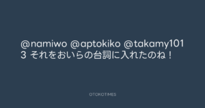 Koyo Maeda @koyomaeda – 12:34・2011年4月15日 2011 4/15 前田耕陽 2011-04-15 @namiwo @aptokiko @takamy1013 それをおいらの台詞に入れたのね! Source:https://x.com/koyomaeda/status/58734975234752513 text X Post 前田耕陽 前田耕陽 この記事が気に入ったら フォローしてね! Follow @OtokoTimes1988 よかったらシェアしてね! URLをコピーしました! 寺岡呼人 @yohito_teraoka - 11:15・2011年4月15日 Koyo Maeda @koyomaeda - 12:34・2011年4月15日 関連記事 Artist 前田耕陽 1968.08.16