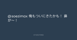 Koyo Maeda @koyomaeda – 14:38・2011年3月24日 2011 3/24 前田耕陽 2011-03-24 @soezimax 俺もついにきたかも! 鼻が〜! Source:https://x.com/koyomaeda/status/50793644340420608 text X Post 前田耕陽 前田耕陽 この記事が気に入ったら フォローしてね! Follow @OtokoTimes1988 よかったらシェアしてね! URLをコピーしました! 寺岡呼人 @yohito_teraoka - 23:37・2011年3月23日 Koyo Maeda @koyomaeda - 14:58・2011年3月24日 関連記事 Artist 前田耕陽 1968.08.16