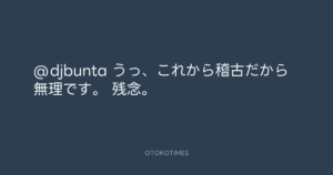 Koyo Maeda @koyomaeda – 16:25・2011年3月26日 2011 3/26 前田耕陽 2011-03-26 @djbunta うっ、これから稽古だから無理です。 残念。 Source:https://x.com/koyomaeda/status/51545403132350464 text X Post 前田耕陽 前田耕陽 この記事が気に入ったら フォローしてね! Follow @OtokoTimes1988 よかったらシェアしてね! URLをコピーしました! Koyo Maeda @koyomaeda - 16:25・2011年3月26日 青山英樹 @aoyama_hideki - 20:11・2011年3月26日 関連記事 Artist 前田耕陽 1968.08.16