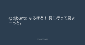 Koyo Maeda @koyomaeda – 11:47・2011年4月7日 2011 4/07 前田耕陽 2011-04-07 @djbunta なるほど! 見に行って見よーっと。 Source:https://x.com/koyomaeda/status/55823876306898944 text X Post 前田耕陽 前田耕陽 この記事が気に入ったら フォローしてね! Follow @OtokoTimes1988 よかったらシェアしてね! URLをコピーしました! Koyo Maeda @koyomaeda - 11:47・2011年4月7日 寺岡呼人 @yohito_teraoka - 13:48・2011年4月7日 関連記事 Artist 前田耕陽 1968.08.16
