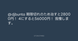 Koyo Maeda @koyomaeda – 14:12・2011年4月7日 2011 4/07 前田耕陽 2011-04-07 @djbunta 期限切れのため治すと28000円! 4にすると56000円! 我慢します。 Source:https://x.com/koyomaeda/status/55860432707141632 text X Post 前田耕陽 前田耕陽 この記事が気に入ったら フォローしてね! Follow @OtokoTimes1988 よかったらシェアしてね! URLをコピーしました! Koyo Maeda @koyomaeda - 14:12・2011年4月7日 Koyo Maeda @koyomaeda - 14:55・2011年4月7日 関連記事 Artist 前田耕陽 1968.08.16