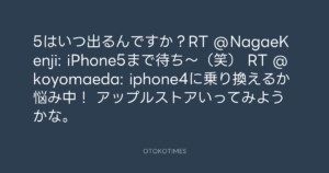 Koyo Maeda @koyomaeda – 18:36・2011年5月10日 2011 5/10 前田耕陽 2011-05-10 5はいつ出るんですか?RT @NagaeKenji: iPhone5まで待ち~(笑) RT @koyomaeda: iphone4に乗り換えるか悩み中! アップルストアいってみようかな。 Source:https://x.com/koyomaeda/status/67885838704451584 text X Post 前田耕陽 前田耕陽 この記事が気に入ったら フォローしてね! Follow @OtokoTimes1988 よかったらシェアしてね! URLをコピーしました! Koyo Maeda @koyomaeda - 18:25・2011年5月10日 Koyo Maeda @koyomaeda - 18:39・2011年5月10日 関連記事 Artist 前田耕陽 1968.08.16