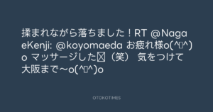 Koyo Maeda @koyomaeda – 10:34・2011年5月25日 2011 5/25 前田耕陽 2011-05-25 揉まれながら落ちました!RT @NagaeKenji: @koyomaeda お疲れ様o(^▽^)o マッサージした⁇(笑) 気をつけて大阪まで~o(^▽^)o Source:https://x.com/koyomaeda/status/73200353352486912 text X Post 前田耕陽 前田耕陽 この記事が気に入ったら フォローしてね! Follow @OtokoTimes1988 よかったらシェアしてね! URLをコピーしました! Koyo Maeda @koyomaeda - 10:31・2011年5月25日 青山英樹 @aoyama_hideki - 13:02・2011年5月25日 関連記事 Artist 前田耕陽 1968.08.16