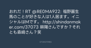 おれだ!RT @RE0MA922: 福野麗生馬のことが好きな人は1人居ます。イニシャルはMです。 http://shindanmaker.com/37073 耕陽さんですか?それとも森崎さん?笑