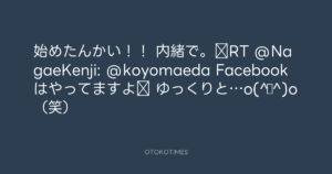 Koyo Maeda @koyomaeda – 13:45・2011年6月2日 2011 6/02 前田耕陽 2011-06-02 始めたんかい!! 内緒で。RT @NagaeKenji: @koyomaeda Facebookはやってますよ‼ ゆっくりと…o(^▽^)o(笑) Source:https://x.com/koyomaeda/status/76147432693571584 text X Post 前田耕陽 前田耕陽 この記事が気に入ったら フォローしてね! Follow @OtokoTimes1988 よかったらシェアしてね! URLをコピーしました! Koyo Maeda @koyomaeda - 13:42・2011年6月2日 Koyo Maeda @koyomaeda - 15:02・2011年6月2日 関連記事 Artist 前田耕陽 1968.08.16