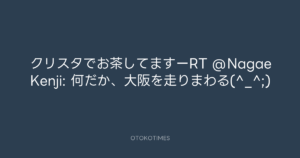 クリスタでお茶してますーRT @NagaeKenji: 何だか、大阪を走りまわる(^_^;)