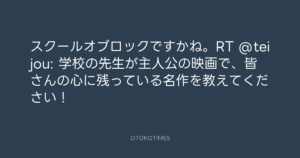スクールオブロックですかね。RT @teijou: 学校の先生が主人公の映画で、皆さんの心に残っている名作を教えてください!