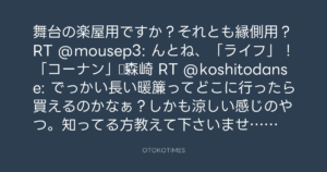 舞台の楽屋用ですか?それとも縁側用?RT @mousep3: んとね、「ライフ」!「コーナン」!▷森崎 RT @koshitodanse: でっかい長い暖簾ってどこに行ったら買えるのかなぁ?しかも涼しい感じのやつ。知ってる方教えて下さいませo(^-^)o なう。