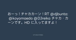 Koyo Maeda @koyomaeda – 12:51・2011年6月28日 2011 6/28 前田耕陽 2011-06-28 おーっ!チャカカーン!RT @djbunta: @koyomaeda @DJreika チャカ・カーンです。HD に入ってますよ! Source:https://x.com/koyomaeda/status/85555783810551808 text X Post 前田耕陽 前田耕陽 この記事が気に入ったら フォローしてね! Follow @OtokoTimes1988 よかったらシェアしてね! URLをコピーしました! Koyo Maeda @koyomaeda - 12:46・2011年6月28日 Koyo Maeda @koyomaeda - 12:58・2011年6月28日 関連記事 Artist 前田耕陽 1968.08.16