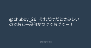 Koyo Maeda @koyomaeda – 15:20・2011年6月28日 2011 6/28 前田耕陽 2011-06-28 @chubby_26: それだけだとさみしいのであと一品何かつけてあげてー! Source:https://x.com/koyomaeda/status/85593373125246976 text X Post 前田耕陽 前田耕陽 この記事が気に入ったら フォローしてね! Follow @OtokoTimes1988 よかったらシェアしてね! URLをコピーしました! Koyo Maeda @koyomaeda - 15:08・2011年6月28日 Koyo Maeda @koyomaeda - 15:30・2011年6月28日 関連記事 Artist 前田耕陽 1968.08.16